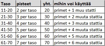 Päivitetty 18.12.14 -- Stattipisteet 10. tasosta eteenpäin